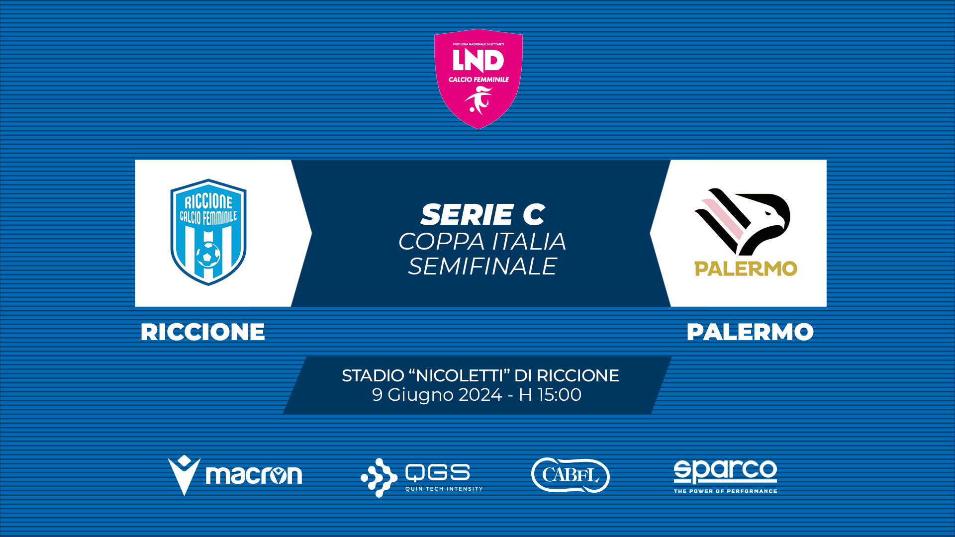 E’ tutto pronto per le semifinali della Coppa Italia di calcio femminile in programma domenica 9 giugno. Alle ore 15 scendono in campo Riccione-Palermo, alle 15.30 Orobica Calcio Bergamo. Due partite secche, in caso di parità al termine dei 90’ saranno i rigori a sancire la squadra vincente.
