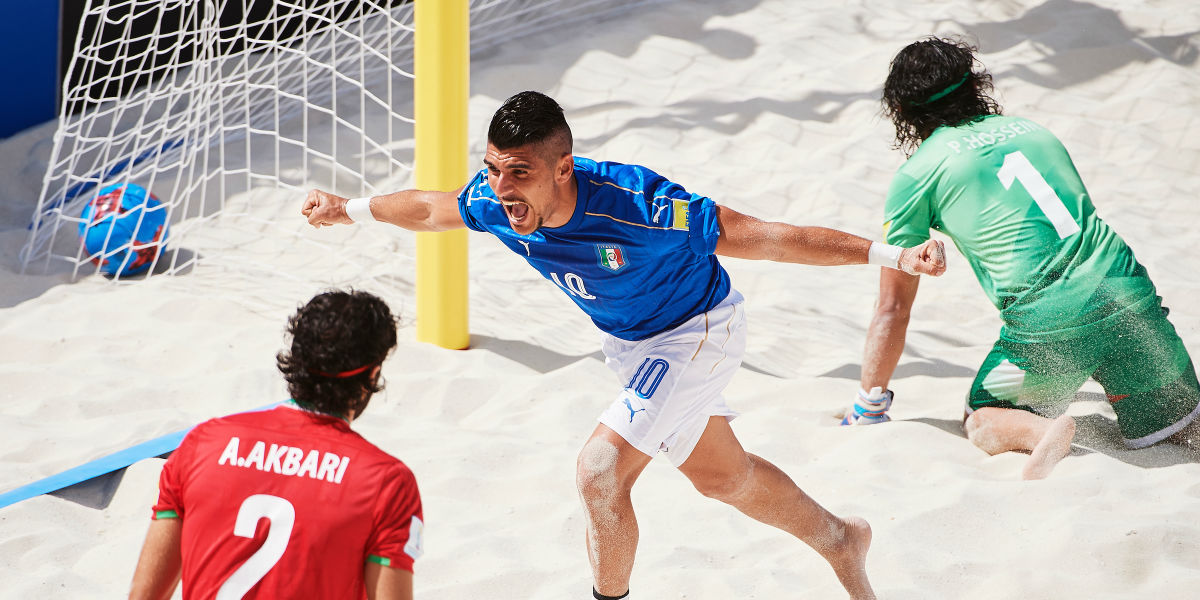 Contro l’avversario più temibile del girone, che un mese e mezzo fa aveva sconfitto 4-3 la squadra di Agostini in occasione della ‘Persian Cup’, gli Azzurri hanno sofferto, rimontando nel terzo periodo due gol di svantaggio grazie alle doppiette del solito Gabriele Gori (8 reti per lui nelle prime due gare del Mondiale, 174 con la nazionale) e Dario Ramacciotti (74 centri in azzurro) e al primo gol nel torneo di Francesco Corosiniti (106 reti con l'Italbeach). Decisiva ai fini della rimonta proprio la rete del capitano, che ha realizzato il momentaneo 3-3 pochi secondi dopo che la nazionale asiatica aveva colpito una traversa andando ad un passo dal 4-2. Ci ha pensato poi Dario Ramacciotti, un altro dei veterani del gruppo azzurro, a regalare la vittoria all’Italia, con qualche brivido nel finale dopo il gol di Moktari a 50 secondi dal termine del match.